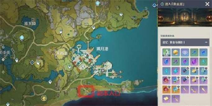 根据上图可知,黄金屋位于璃月港的南方。注意,如果你在地图上未发现这个副本,必然是未满足下述两个条件。