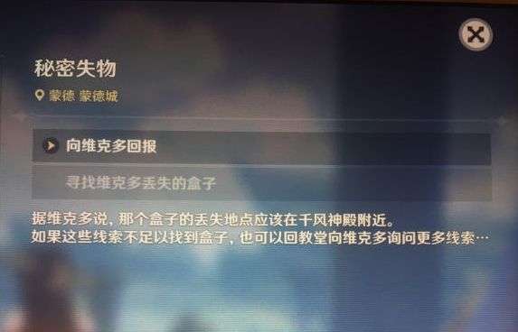 原神维克多丢失的盒子在哪:盒子寻找方法:对话的时候,要问线索,选择最后一个,回来的时候遇到了什么,