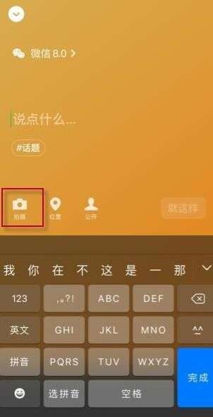 3、点击状态编辑界面的“拍摄”