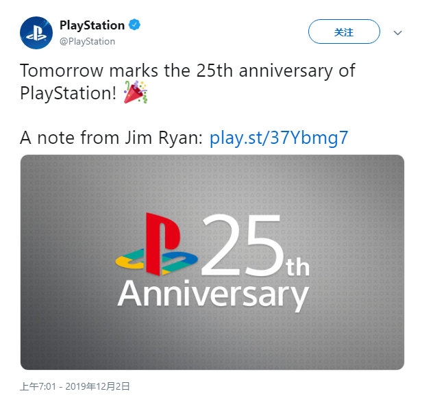12月3日是PlayStation品牌25周年纪念日,官方发文回顾了PlayStation的历史,还宣布将在本周举行一系列庆祝活动。至于具体活动内容,官方暂未公布。