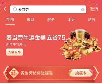 【肯德基】、【麦当劳】、【滴滴】、【蒙牛】、【星河】、【银泰百货】、【一汽大众】,也有额外抽福卡机会。