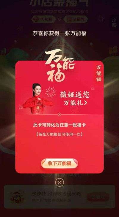 2. 支付宝每天搜以下关键字:【消费券】翻牌沾福卡,【薇娅】有机会中万能卡。