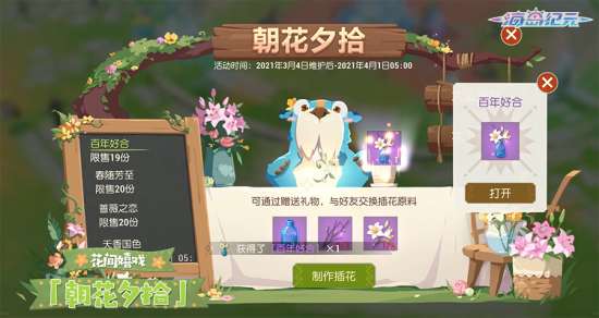 参与「朝花夕拾」,玩转大盗别跑、花下相逢,收集插花材料,制作「百年好合」吧!活动中不仅能感受花间嬉戏的乐趣,还可以获取进阶符文石、高级修习卷轴等丰富好礼。