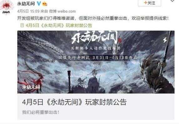 国产ACT《永劫无间》已经于早些时候开启了国服先行者测试,部分玩家获得邀请码进入游戏进行体验,不过令人遗憾的是,虽然游戏的正式版还没有发售,游戏的外挂却已经被开发出来了。日前,永劫无间官方发布玩家封禁公告,并调侃开发组被玩家打的唯唯诺诺,但面对外挂必然重拳出击。