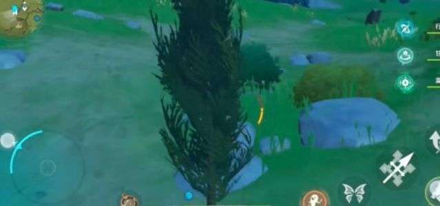松木的外观如下图所示,与其他树木外观差别比较大很容易辨别。只要使用普通攻击击中树木,就会掉落木材了。
