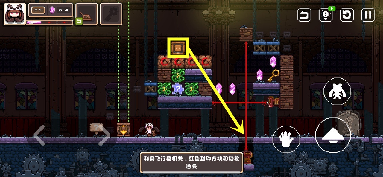 3.接着我们就可以拿钥匙和宝石了,我们拿回飞行器,然后把标记的箱子推到图三的位置上,然后放一个我们的幻象。