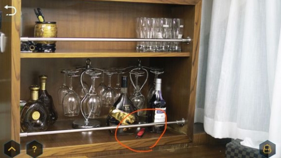 2.进入游艇内部,在酒柜处拿到瑞士军刀,用钥匙打开抽屉;