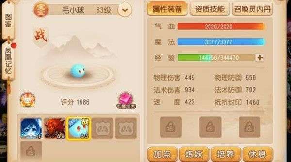3、最后,毛小球宝宝的攻击、防御、体力、法力、速度资质都是非常不错的。