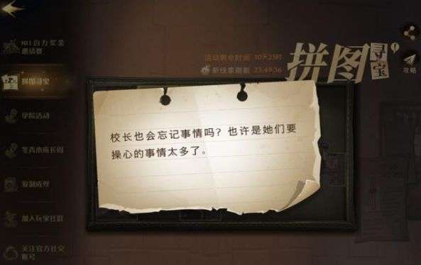 哈利波特校长也会忘记事情吗?也许她们要操心的事情太多了,此为10.9今日的第二个线索,在什么地方可以找到,如何寻找到对应的位置,下面就来介绍下哈利波校长也会忘记事情吗线索怎么找到。