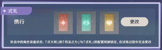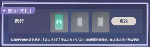 旅行者们还可以携行「式札」来帮助自己战斗。试炼中,携行「式札」的配置不可更改。