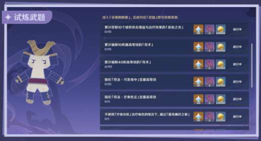 注:通过试炼挑战,完成对应的「试炼武题」即可获取原石、大英雄的经验、摩拉等奖励。