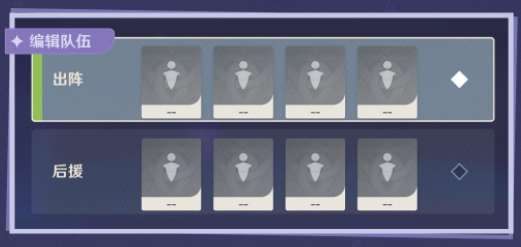 旅行者们需将参与试炼的角色编成两支队伍,分别为「出阵」与「后援」队伍。「出阵」为优先上场进行试炼的队伍,「后援」为替补队伍。