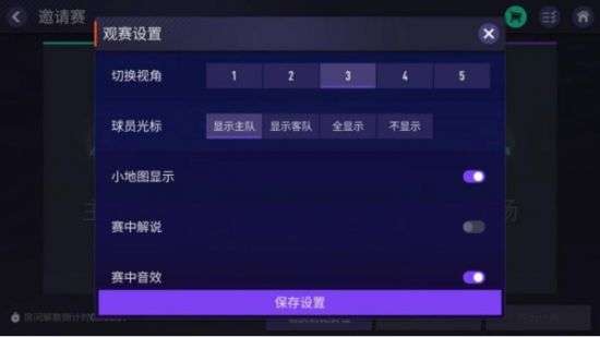 除此之外,观战玩家还可以点击球场切换按钮右侧的观赛设置按钮,挑选出自己最喜爱的观赛模式。