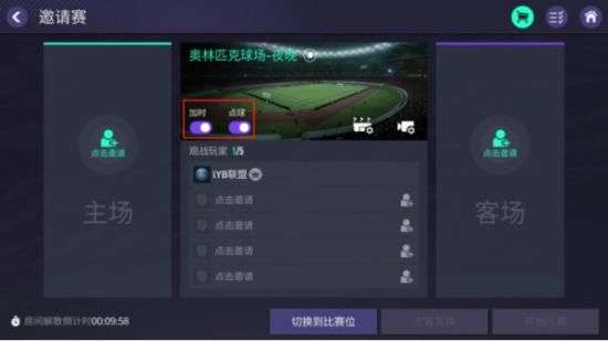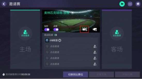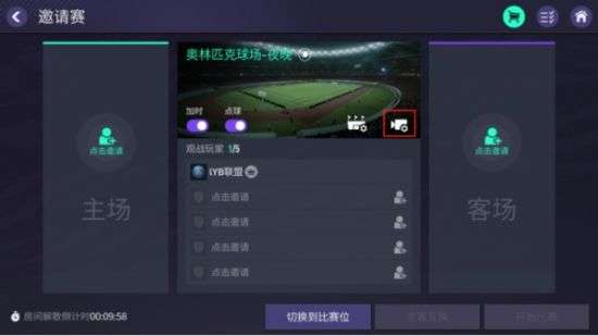 邀请者玩家可以点击点球按钮右侧的球场切换按钮,自由更换比赛球场。