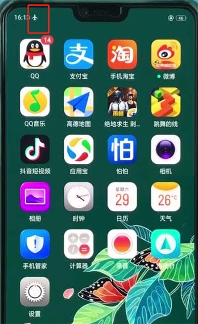 1、在手机没电的时候想快速充电,可以打开我们的oppor15手机桌面,然后下滑控制中心,点击飞行模式;