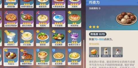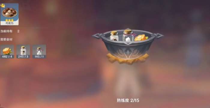 3、这时我们使用一定数量的巧克力食谱,持续烹饪就有概率获得果味奶糖料理