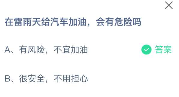 以上就是在雷雨天给汽车加油,会有危险吗,支付宝蚂蚁庄园2025年10月31答案最新,更多精彩内容,请点击关注pk游戏网更新!
