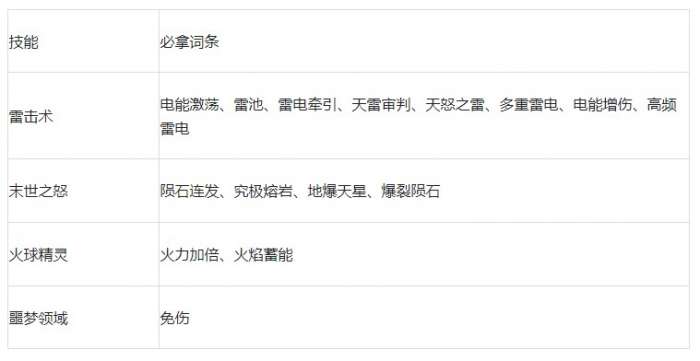 搭配说明:所有技能前期就送,【雷击术】有着不错的追踪效果,拿到【电能激荡】、【天雷审判】后伤害很高,配合【末世之怒】可快速完成清怪,【火球精灵】提供的灼烧快帮【雷击术】触发雷池效果。【噩梦领域】提供续航。