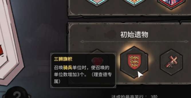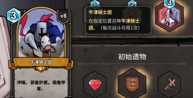 在宝物方面可以选择刷新类的遗物,送达信件任务还可以给钱,火堆强化就可以直接给到幽灵骑士。减少费用之后,就再也不需要担心会卡手,很快就能来到第1关的Boss战。这红卡的Boss确实很烦人,上面全部都是弓箭手,如果没有先将他们杀掉,那就是慢性死亡。所以先需要解决这些小兵,然后去应对Boss,在Boss回合,还好有骑士团自带护甲扛伤,补一个剑与青团之后就能够顺利的通过。