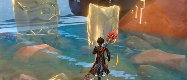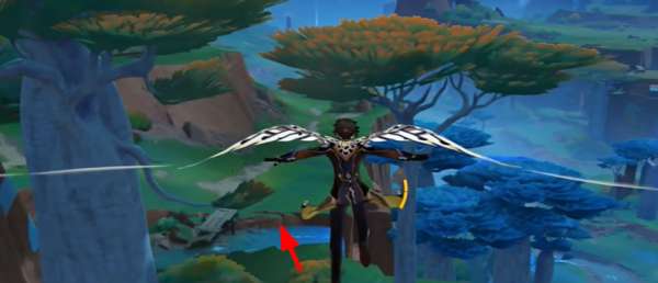 3、当玩家到达瀑布后,可以在下方看见一处闪光点