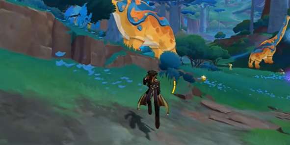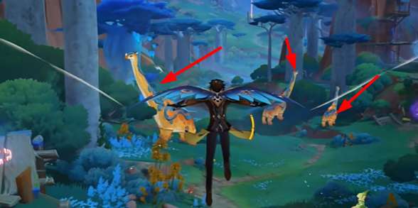 4、直接跑到最大的那只这里,在这里我们能够看到它的脚下有一个神瞳的位置。