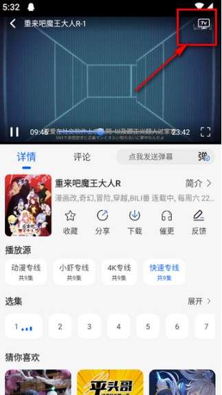 动漫屋app怎么投屏,用户在本站下载安装好软件,点击手机桌面图标,打开app,打开想投屏观看的视频,然后点击右上角如图所示的投屏按钮,点击电视设备名称即可。