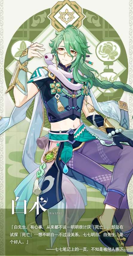 4、白术定位为奶辅,可替代其他角色,进入其队伍的也比较多,比如护盾辅助(钟离),治疗辅助(琴)都在他的范围内