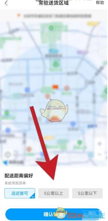 3、根据自己的偏好,选择远近皆可、5公里以上、5公里以下的常驻区域。