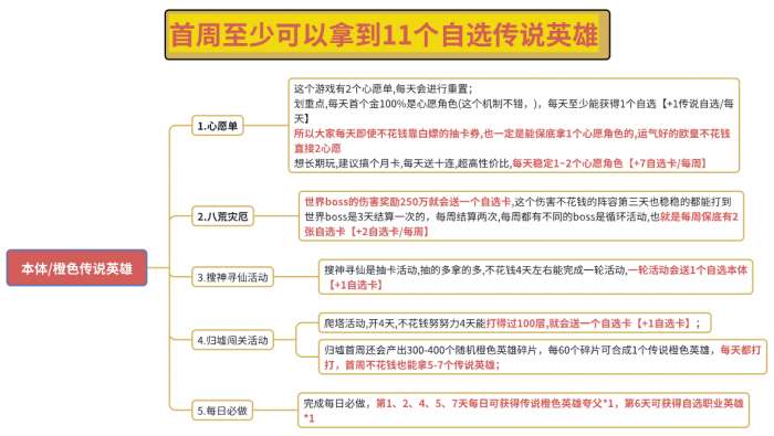 首周至少能拿到11个本体/自选英雄,把主C养到6星,妥妥的没压力