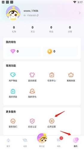 1、打开软件,点击“我的”选项,然后点击“应用设置”选项。