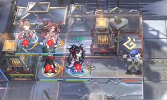 如图所示,部署德克萨斯→艾雅法拉→纯烬艾雅法拉→煌,全员向右。