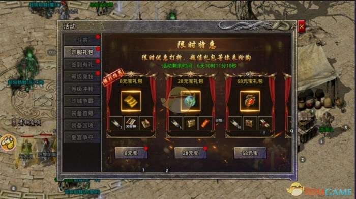 8元宝礼包获得的金币在前面用处还是很大的,强化装备基本都能增加5-6十点攻击。
