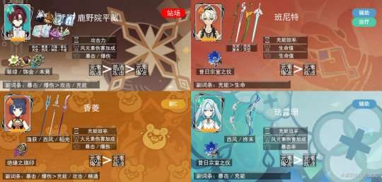 香菱大招、战技输出,鹿野院风套时才能减火抗。