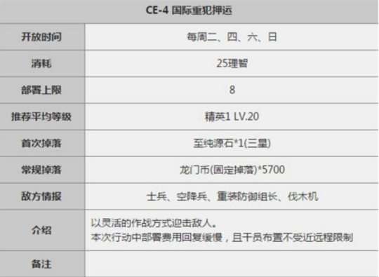 明日方舟CE-4国际重犯押运三星通关攻略,需要采用灵活的作战方式来对抗敌人。本关卡中,干员可以任意布置,不受近距离或远距离的限制,但部署费用回复很慢。
