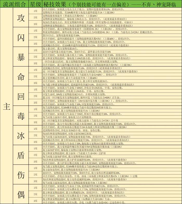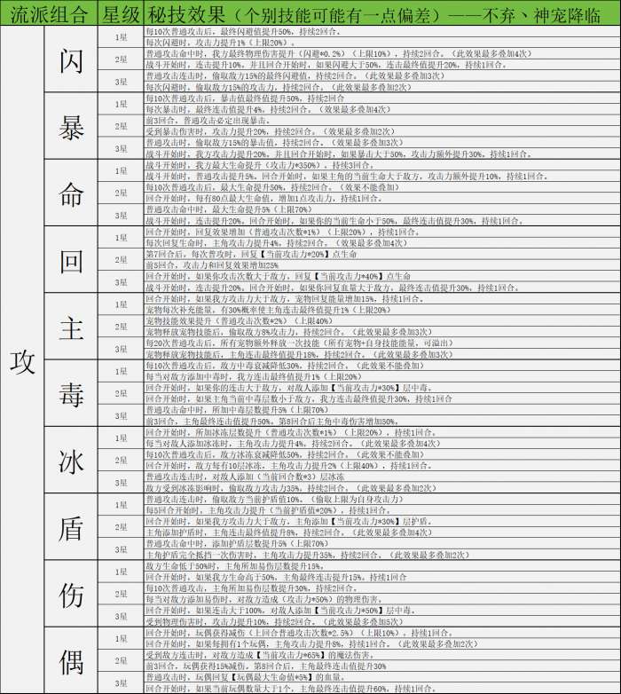 《神宠降临》中,前50关通过战斗学习固定秘技。55关起出现秘技树,需将两流派升至指定星级(1-3星)方可修炼对应组合秘技,每次仅能二选一。各关卡秘技树数量固定,如55关为3/1/1分布。下面是《神宠降临》双属性秘技介绍!