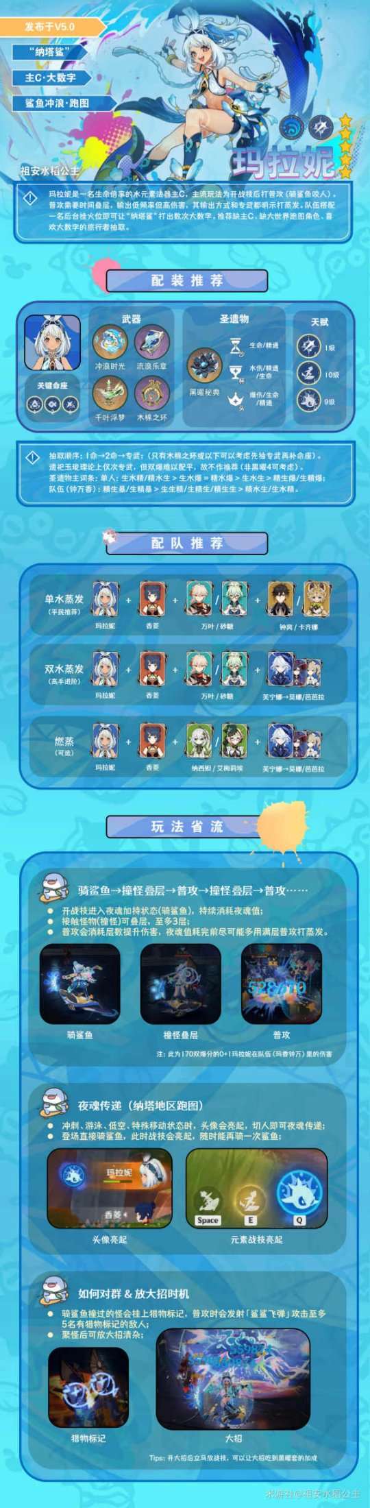 最麻烦的是,当玛拉妮骑鲨鱼时,如果切人则会直接结束夜魂状态,而如果不切人则难以转为另一个角色。由于夜魂值无法承受如此长的转底时间,这将使局势变得非常尴尬。因此,在双水队组合中,我在备注中添加了“高手进阶”标记。