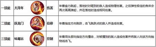 从技能介绍来看,年兽拥有优秀的机动,伤害和控制能力,感觉技能和猪八戒有一定的相似,操作难度会比其他神兽难度大一些。