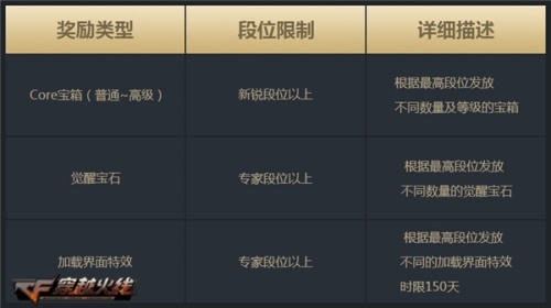 无尽挑战也在版本更新后迎来了第二赛季休赛期。在休赛期期间,第1赛季常规奖励会进行结算,新锐段位、专家段位CFer可分别获得对应等级的“Core宝箱(普通~高级)”、觉醒宝石”、“加载界面特效”。与此同时,CFer在休赛期间进行无尽挑战模式,将额外获取三倍无尽挑战分数。