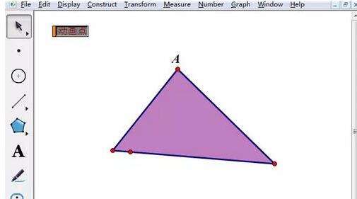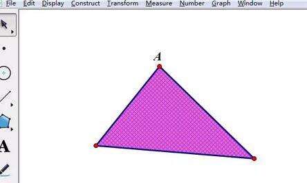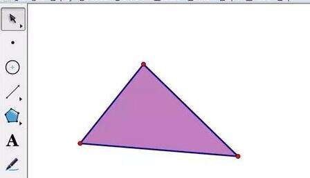 打开几何画板,点击左侧工具箱的“多边形”工具,选择带有多边形内部的工具,在画板空白区域任意画一个三角形,这样画出的三角形是有内部的,