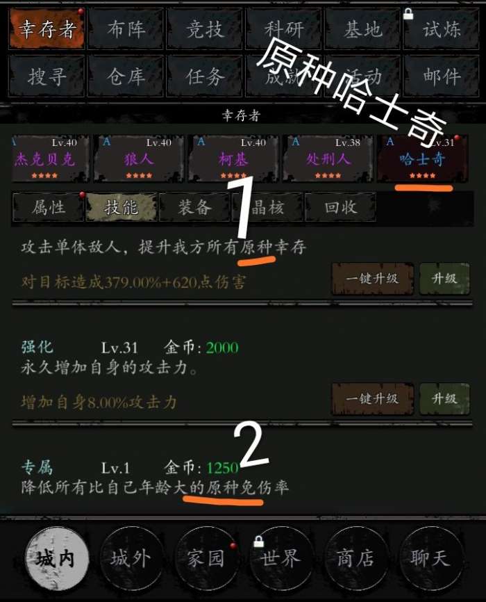 哈士奇还是原种的好,可惜我其它的狗子和跟班都是异种的多。所以想要哈士奇发挥出最好的功效,最好是在4星原种、异种中优先培养原种。