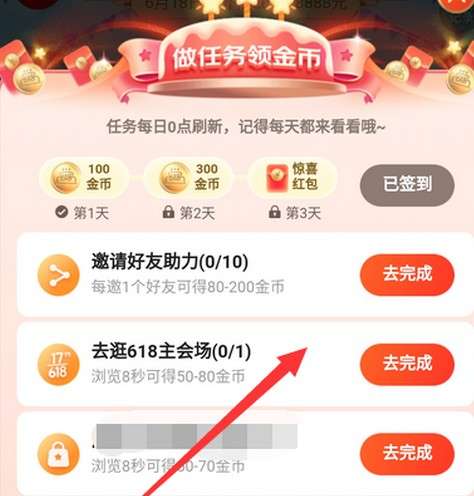 3、在任务界面按照提示去完成任务,然后获得对应的金币