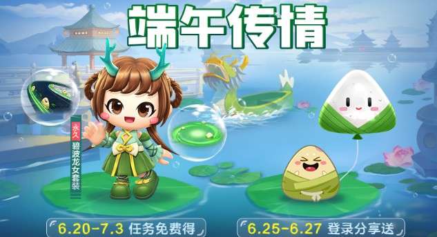 端午节马上就要到啦,为大家准备了端午福利宝箱,有可爱森系的碧波龙女套装、端午主题元素竹叶粽子炫光、粽子胎印、粽子车贴、粽子气球等好礼。