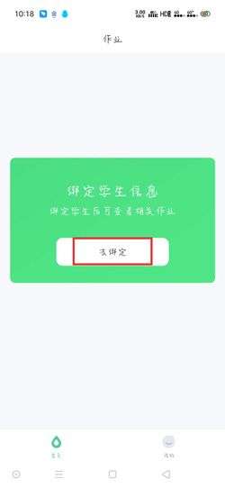 1.我们在注册并登录小七学伴APP之后,想要看到老师布置的作业,需要先完善学生个人信息,打开小七学伴APP,在“首页”点击【去绑定】;