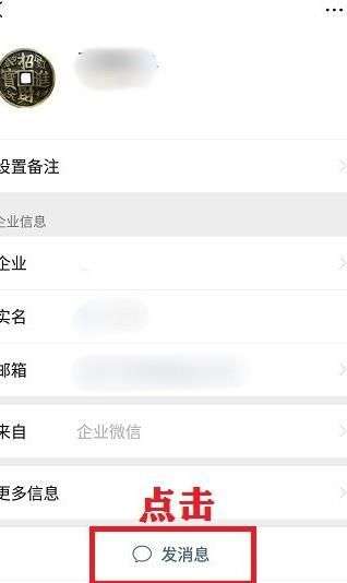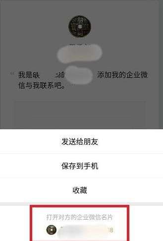 长按后出现对话窗,点击 打开对方的企业微信名片;
