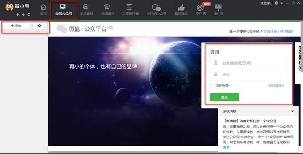 微小宝客户端是一款公众号管理软件,多账号管理数据监控、分组管理、官方授权海量资源排行榜、黑马爆文、自定义文章素材,微小宝公众号助手编辑微信文章抓取、自定义样式高效同步云端同步、定时发送。