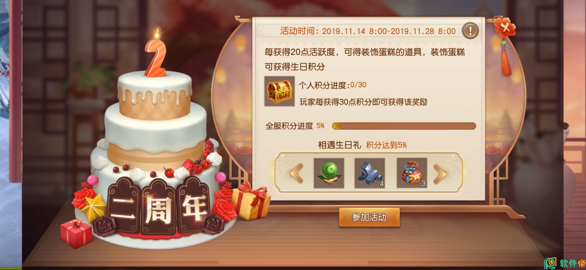 英雄还可以与其他好友一起,积累活跃度,并在此过程中获得为《三国如龙传》制作蛋糕,收集祝福,挑战游戏项目组成员的机会,感受浓浓节日氛围。