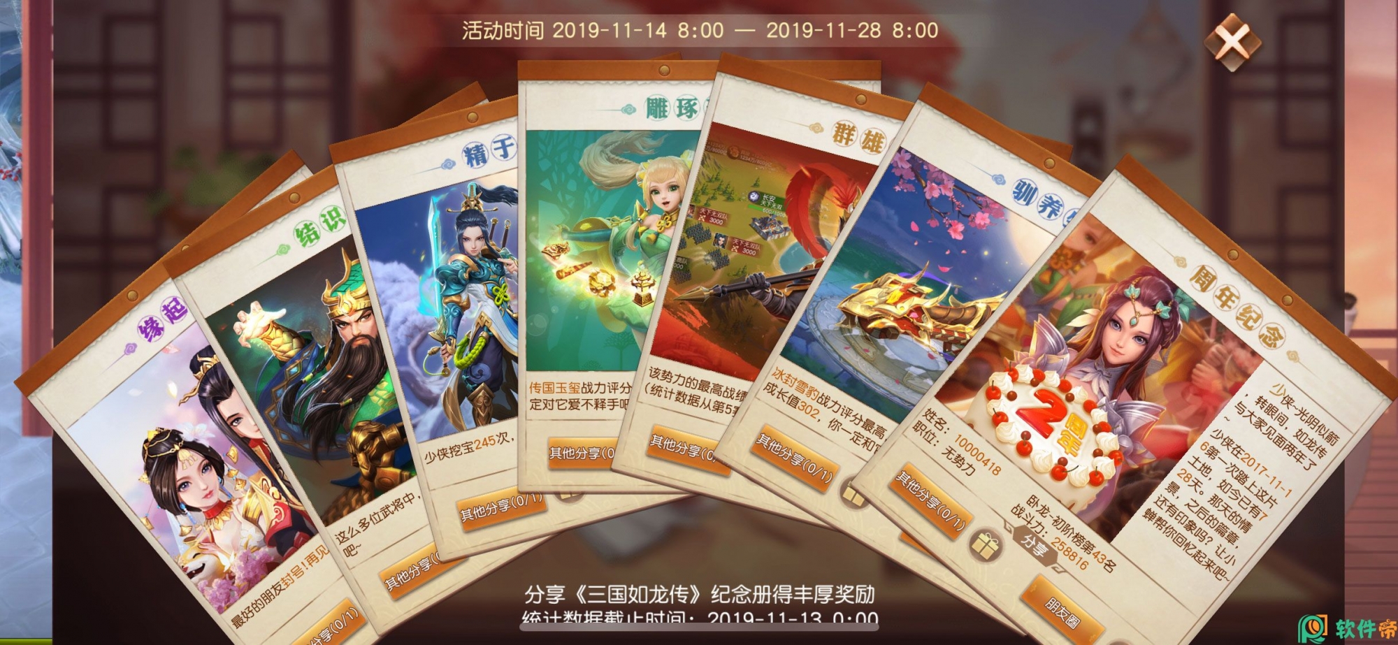 在11月14日~11月28日期间,英雄只要登录游戏,即可领取如龙传的年度纪念册,浏览并分享这一纪念册,更能解锁丰厚奖励。