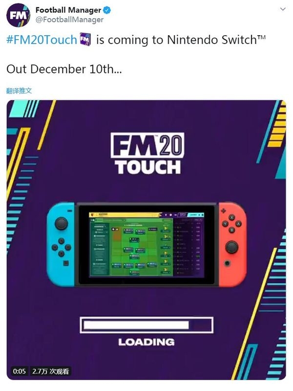 《足球经理2020 Touch》本月10日将登陆Switch平台,该游戏是全世界最受欢迎的足球经营游戏的精简版本。