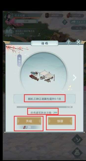 酒楼也作为二测时候的老建筑,建模方面基本没有改动,只是酒馆的功能有所调整,从之前的贩卖食材药材酒材,改成了直接提升江湖属性的一个功能性建筑,也是应了各位胖友一致吐槽江湖属性不够的要求,确实有在探索侠道投放一些江湖属性,防止出行失败。这种建筑就属于养成形建筑,类似二测和三测时候的书馆和铁匠铺。可以通过升级之后获取更高的产量。在图二可以看到需要消耗侠道专属货币——情义值来升级建筑。