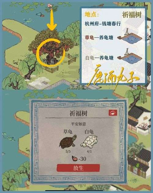 [一共有5个井需要放生草龟]